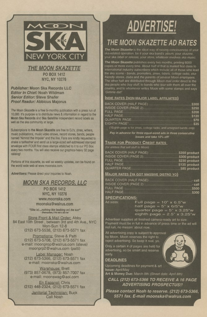 INSIDE!: More ska news, more ska notes, more ska dates, more ska contacts, more ska releases, a smack in the face and a healthy dose of ska ranting!